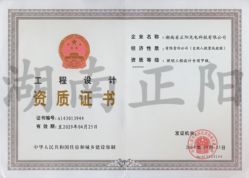 湖南省正陽光電科技有限公司是一家從事亮化工程及大型燈光藝術(shù)的設(shè)計、制作、安裝和維護于一體的專業(yè)化公司。公司資質(zhì)齊全、管理嚴謹、技術(shù)先進、實力雄厚,取得了城市及道路照明工程專業(yè)承包壹級資質(zhì)、照明工程設(shè)計專項甲級資質(zhì)、國家高新技術(shù)企業(yè)、國家“重質(zhì)量·守誠信”示范企業(yè)。